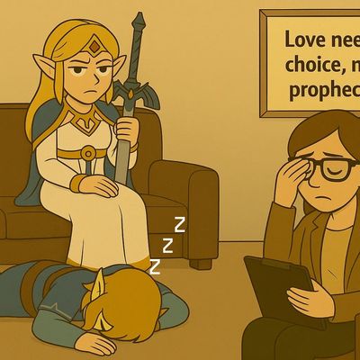 Therapist: [looking over clipboard] “So, today we’re focusing on the topic of emotional labor. Link, Zelda — how would you describe your relationship outside of saving the kingdom?”